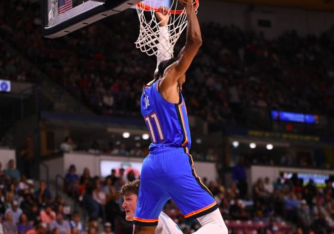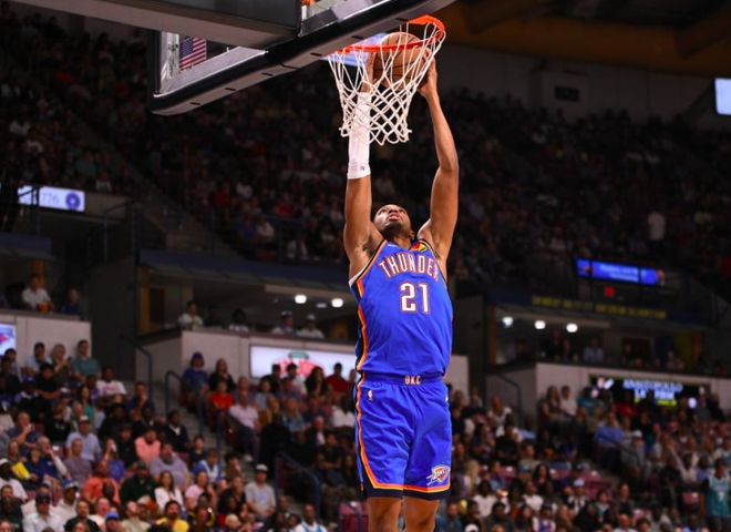 雷霆在上赛季夺得了总冠军,休赛期阵容上也没有什么调整,季前赛首战球队首发全都缺席,派出托皮奇、乔、维金斯、吉昂和杰林·威廉姆斯的首发阵容。可就算是缺少主力球员,雷霆球员在场上依然充满自信,面对黄蜂主力也不落下风,进攻端多点开花,每个球员上场都能做出贡献,一直占据着场上主动,最终取得了一场21分大胜。